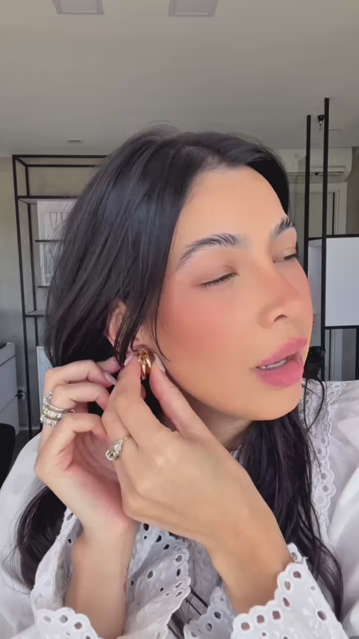 Três em um: o brinco argola pq tripla traz o efeito de múltiplas argolas em uma única peça. Compacto e versátil, ele combina volume com leveza, criando um visual moderno sem exageros.