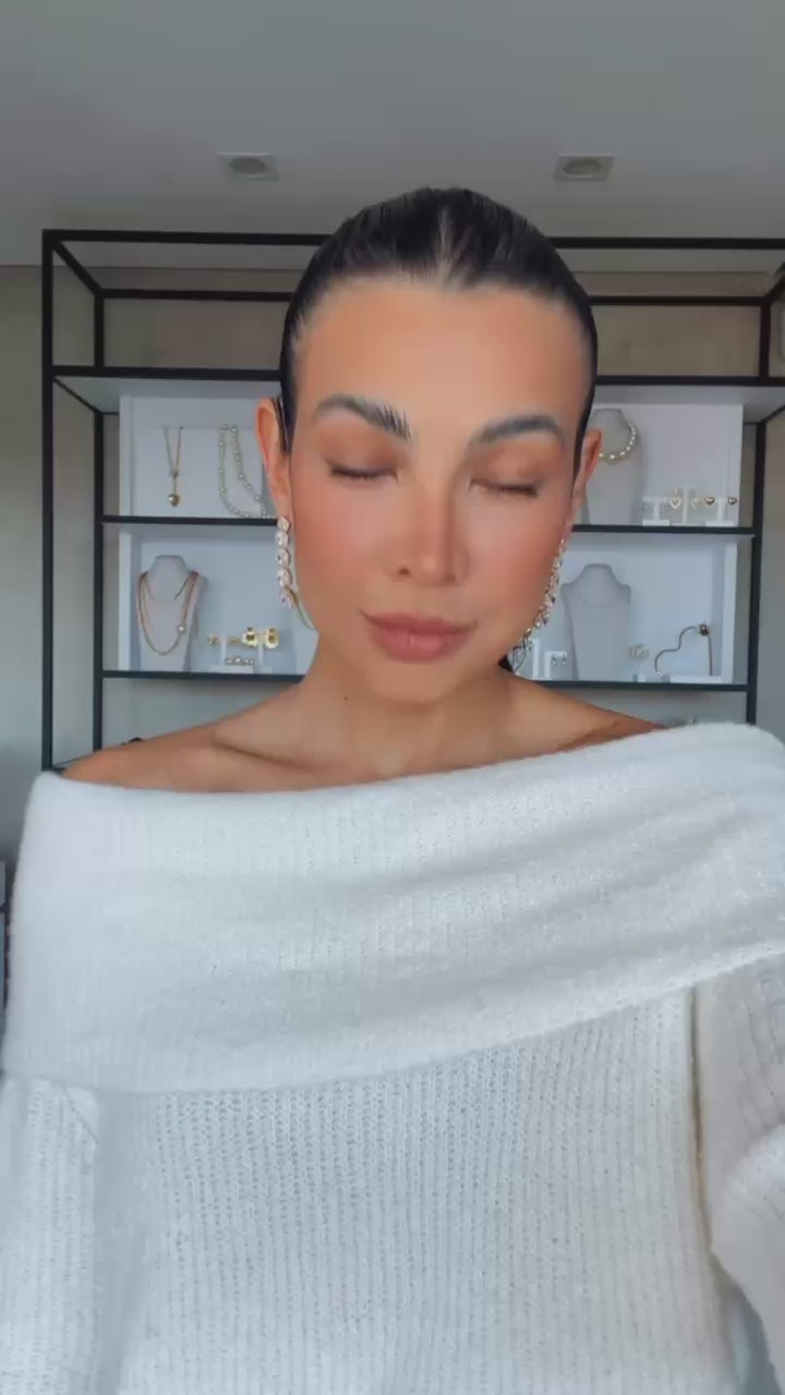 Composto por uma sequência de pedras redondas cravejadas, ele reflete a luz de forma intensa e sofisticada. Seu design alongado valoriza o rosto e transforma qualquer look em uma produção deslumbrante, ideal para ocasiões especiais.