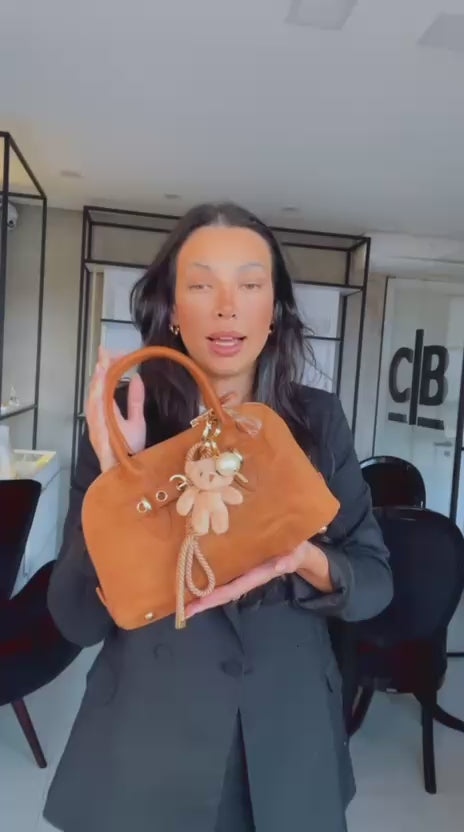 O acessório ideal para trazer personalidade e charme ao seu look. Composto por um delicado ursinho de pelúcia caramelo, corda com acabamento dourado, pingente de chave, pérola oversized e coração vazado. Perfeito para pendurar na bolsa ou nas chaves e transformar pequenos detalhes em grandes destaques.