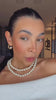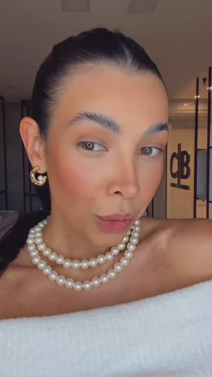 Pérolas grandes e pequenas se intercalam em um ritmo leve, criando textura, movimento e um visual cheio de personalidade.