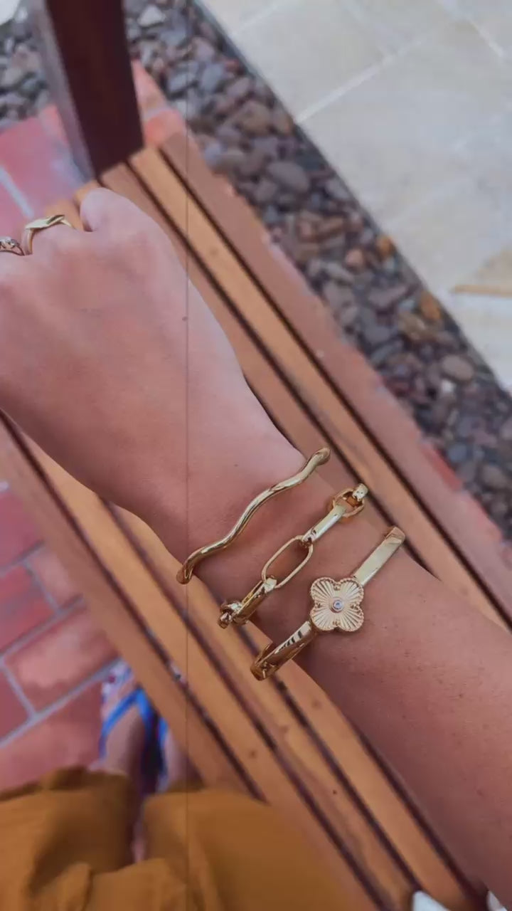 A pulseira bracelete Monique ranhuras combina elegância e delicadeza em um design sofisticado. Com ranhuras que adicionam textura e um pingente em formato de flor, o brilho no centro dá um toque de luz, tornando esta peça única e encantadora.
